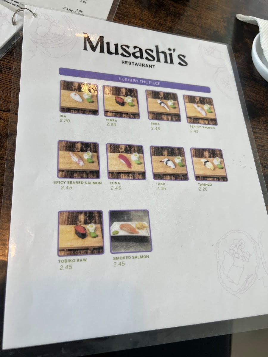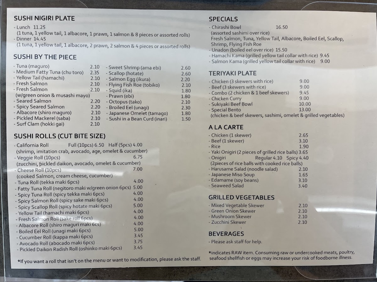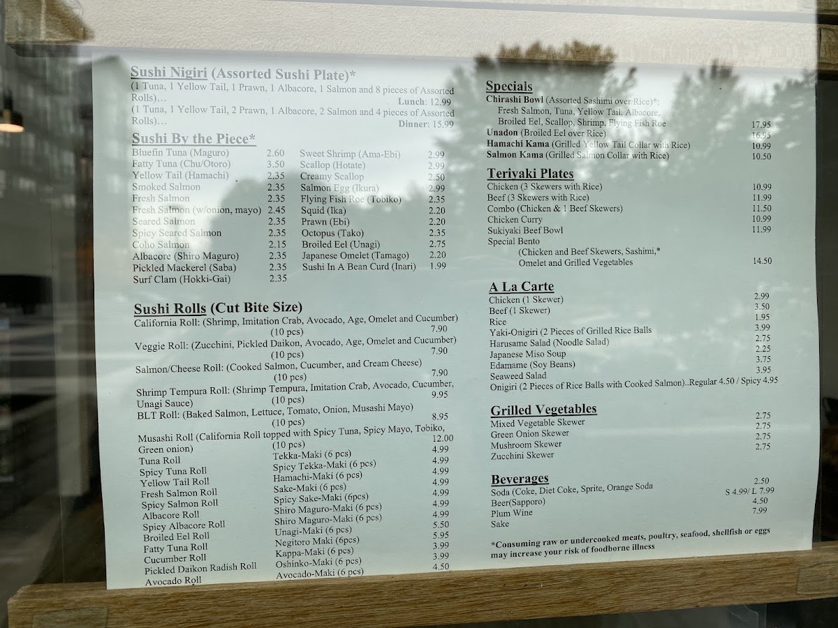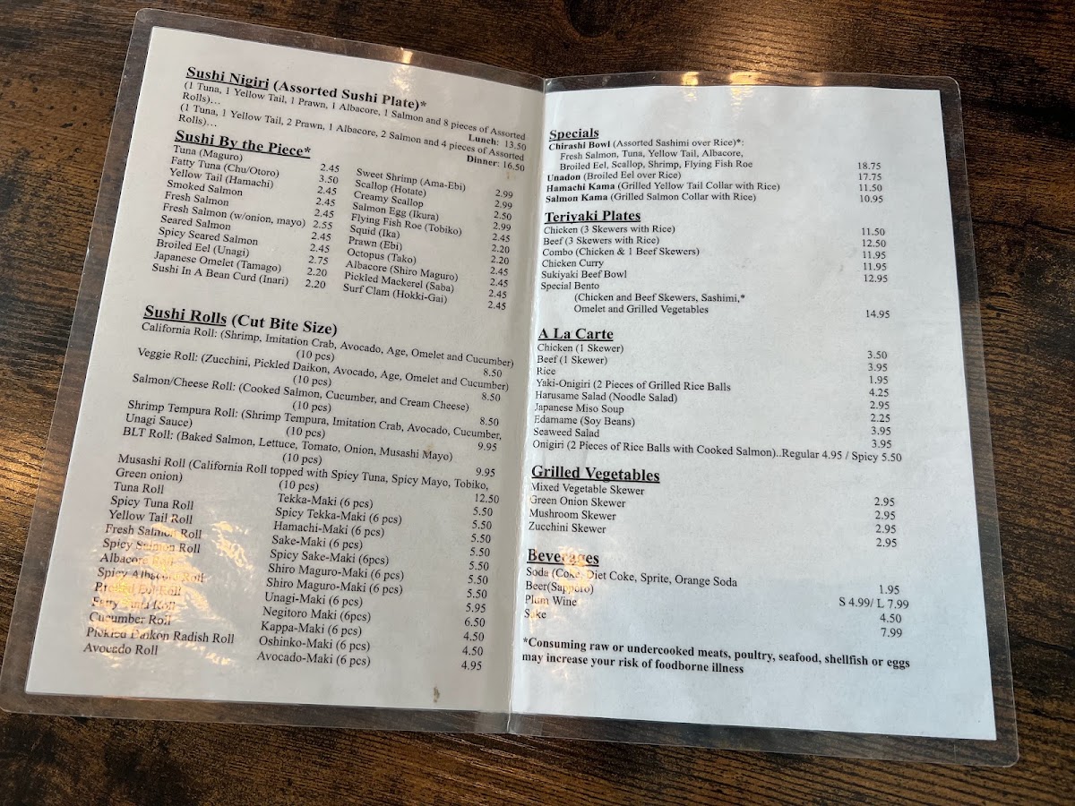 Fresh Salmon, Tuna, Yellow Tail, Albacore, Broiled Eel, Scallop, Shrimp, Flying Fish Roe